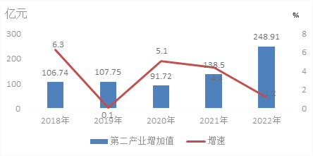 圖6 2018-2022年第二產(chǎn)業(yè)增加值及其增長(zhǎng)速度