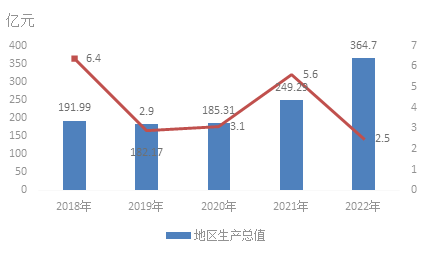 圖1 2018-2022年地區(qū)生產(chǎn)總值(GDP)及其增長(zhǎng)速度