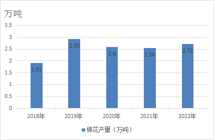 圖5 2018-2022年棉花產(chǎn)量