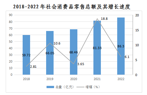 消費品市場總體平穩(wěn)。全年全市社會消費品零售總額86.3億元,比上年增長6.1%。分行業(yè)看,批發(fā)業(yè)商品銷售額23.61億元,增長20.3%;零售業(yè)商品銷售額57.71億元,增長8.2%;住宿業(yè)銷售額0.74億元,增長6.2%;餐飲業(yè)零售額10.84 ,增長5.9%。