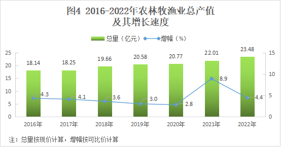 備注:2022年農林牧漁業(yè)總產值可比增幅全市排位第1