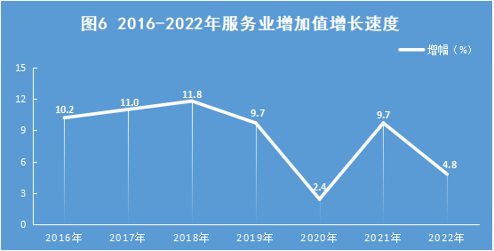 2022年全縣服務業(yè)實現(xiàn)增加值57.06億元,同比增長4.8%。其中,批發(fā)和零售業(yè)增加值8.12億元,同比增長6%;交通運輸、倉儲和郵政業(yè)增加值8.42億元,同比增長2.9%;住宿和餐飲業(yè)增加值1.26億元,同比增長1.9%;金融業(yè)增加值2.92億元,同比增長6.7%;房地產業(yè)增加值11.85億元,同比增長3.8%;信息傳輸、軟件和信息技術服務業(yè)增加值1.47億元,同比增長7.8%。