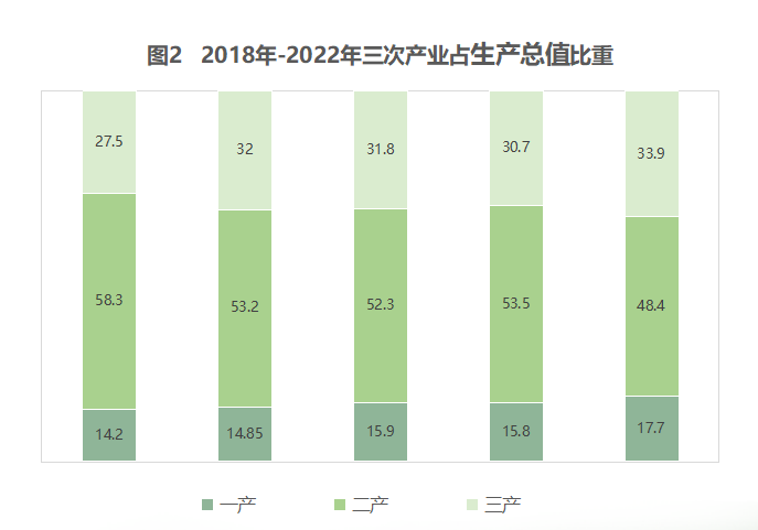 第一產(chǎn)業(yè)增加值占生產(chǎn)總值比重為17.7%,第二產(chǎn)業(yè)增加值占生產(chǎn)總值比重為48.4%,第三產(chǎn)業(yè)增加值占生產(chǎn)總值比重為33.9%。人均地區(qū)生產(chǎn)總值69402元。