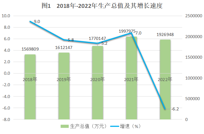 初步核算,2022年全縣生產(chǎn)總值完成1926948萬元,同比下降6.2%。其中:一產(chǎn)增加值340295萬元,同比增長4.3%;二產(chǎn)增加值932509萬元,同比下降15.1%;三產(chǎn)增加值654144萬元,同比增長3.3%。