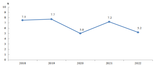 圖2:2018—2022年全市三次產(chǎn)業(yè)結(jié)構(gòu)