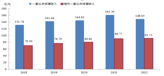 圖3:2018—2022年全市公共財政預(yù)算收入和地方財政收入