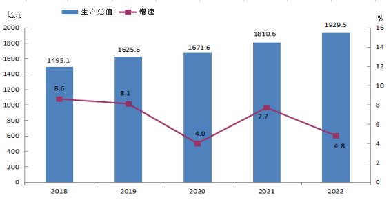 圖1:2018—2022年全市地區(qū)生產(chǎn)總值及增長速度