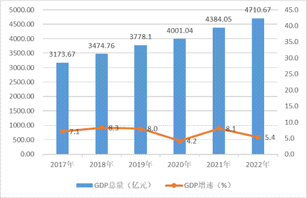 圖1? 2017-2022年GDP總量與增速