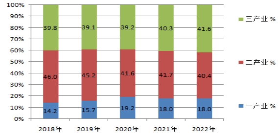 2018-2022年三次產(chǎn)業(yè)增加值占地區(qū)生產(chǎn)總值比重 ????