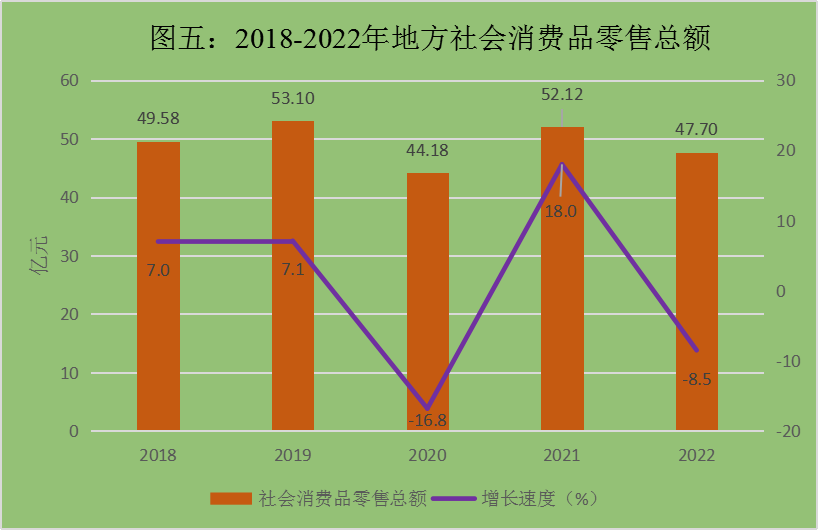 全年全州批發(fā)和零售業(yè)增加值49.58億元,比上年增長1.4%;交通運輸、倉儲和郵政業(yè)增加值32.85億元、增長6.6%;住宿和餐飲業(yè)增加值3.07億元、下降14.0%;金融業(yè)增加值21.16億元、增長10.4%;房地產(chǎn)業(yè)增加值9.48億元、下降0.4%;其他服務(wù)業(yè)增加值100.49億元、增長2.7%。全年地方規(guī)模以上服務(wù)業(yè)企業(yè)營業(yè)收入比上年增長10.8%。