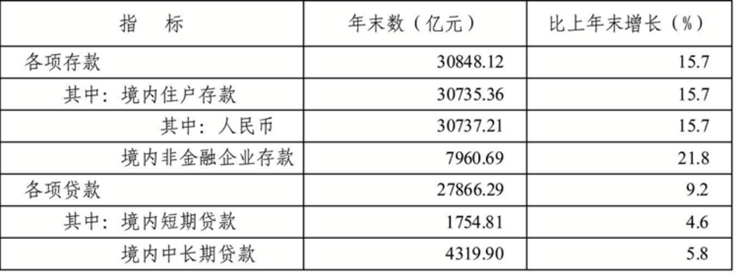 年末金融機構(gòu)(含外資)本外幣各項存款余額30848.12億元,比年初增加4186.02億元。其中:人民幣各項存款余額30737.21億元,增加4177.78億元。本外幣各項貸款余額27866.29億元,比年初增加2360.85億元。其中:年末金融機構(gòu)(含外資)人民幣各項貸款余額27413.92億元,增加2343.04億元。