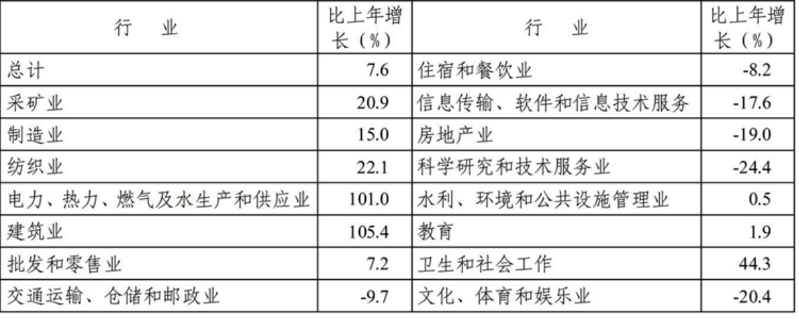 全年規(guī)模以上十個主要行業(yè)“8升2降”,石油和天然氣開采業(yè)增加值比上年增長5.8%,電力、熱力生產(chǎn)和供應(yīng)業(yè)增長8.7%,石油、煤炭及其他燃料加工業(yè)增長6.8%,化學(xué)原料和化學(xué)制品制造業(yè)增長3.1%,煤炭開采和洗選業(yè)增長30.9%,有色金屬冶煉和壓延加工業(yè)增長7.8%,非金屬礦物制品業(yè)增長11.1%,開采專業(yè)及輔助性活動增長1.0%,黑色金屬冶煉和壓延加工業(yè)下降8.8%,紡織業(yè)下降15.1%。