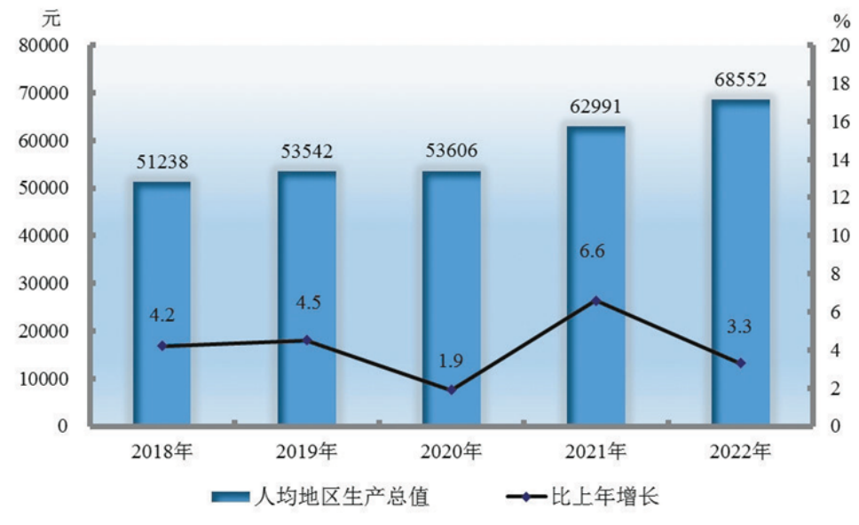 圖3 2018—2022年人均地區(qū)生產(chǎn)總值及其增長速度