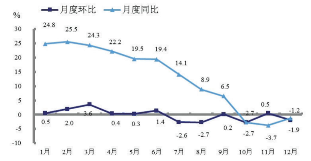 圖6 2022年工業(yè)生產(chǎn)者出廠價格月度漲跌幅度