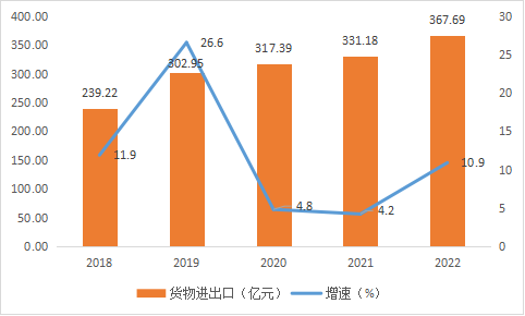 2018—2022年貨物進出口總額表