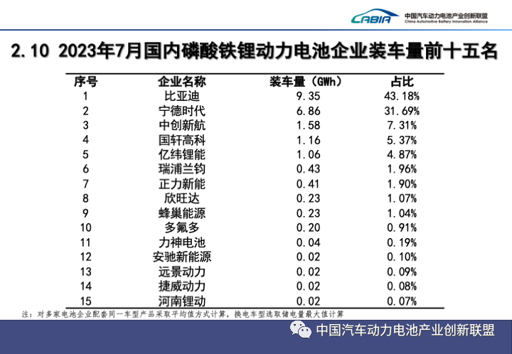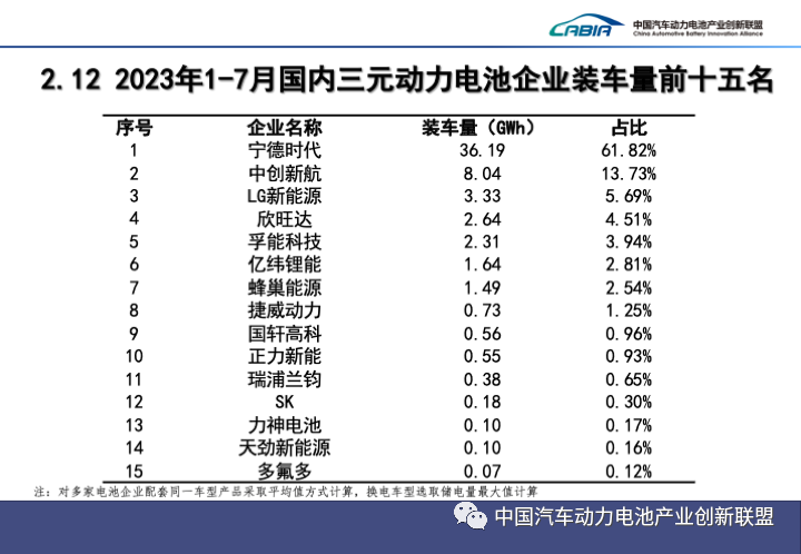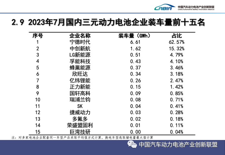 2023年7月動(dòng)力電池月度數(shù)據(jù)