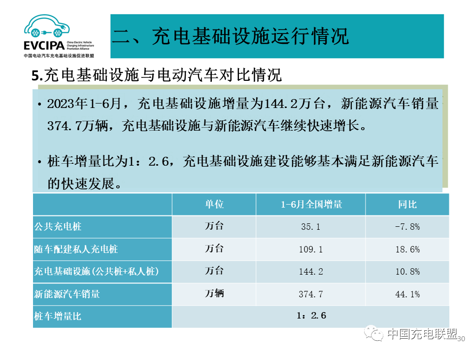 2023年6月全國電動汽車充換電基礎設施運行情況2023年6月全國電動汽車充換電基礎設施運行情況:公共充電樁同比增長40.6%