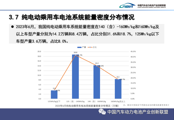 本月,純電動乘用車單車帶電量(三元電池)提升至150kWh,動力電池系統(tǒng)能量密度達到261Wh/kg。