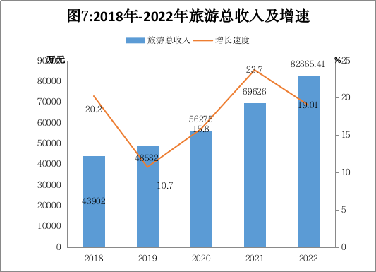 全年實(shí)現(xiàn)旅游總收入82865.41萬元,比上年增長19.01%。