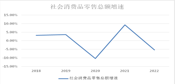 2018-2022年社會消費品零售總額增速