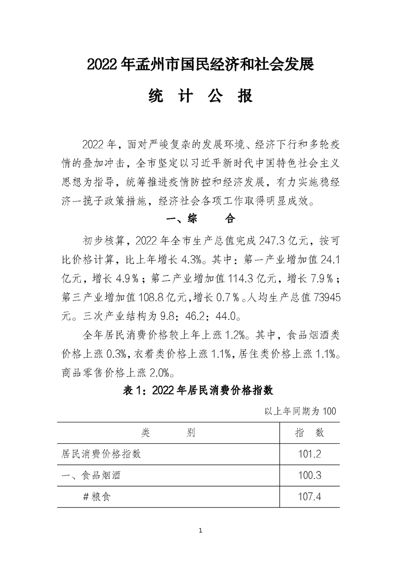 2022年焦作市孟州市人民政府國民經(jīng)濟和社會發(fā)展統(tǒng)計公報(2024年更新)