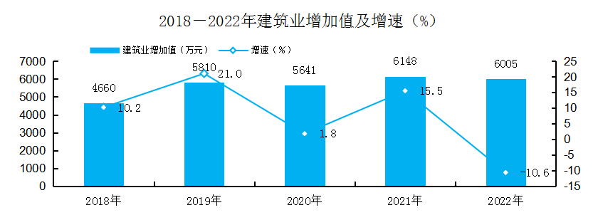 全年建筑業(yè)增加值6005萬元,同比下降10.6%;房地產(chǎn)業(yè)增加值1980萬元,同比增長3.5%。分別占全年地區(qū)生產(chǎn)總值比重3.4%和1.1%。