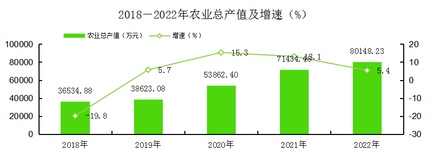 | 農(nóng)林牧漁業(yè)總產(chǎn)值(萬元) | 80148.23 | 5.4 | 100.00 | 5.4 |