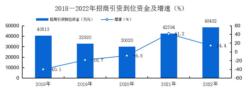 全年新建和續(xù)建招商引資項目18個,實際到位資金48482萬元,同比增長14.4%。其中,新建項目14個,到位資金21304萬元,同比下降21.1%;續(xù)建項目4個,到位資金27178萬元,同比增長76.6%。