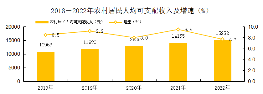 農(nóng)村居民人均可支配收入15252元,同比增長7.7%。