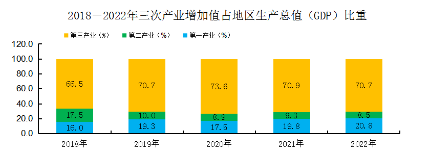 按照我國地區(qū)生產(chǎn)總值統(tǒng)一核算和數(shù)據(jù)發(fā)布制度規(guī)定,地區(qū)生產(chǎn)總值核算包括初步核算和最終核實兩個步驟。經(jīng)最終核實,2021年地區(qū)生產(chǎn)總值總量為168004萬元,按可比價計算,比上年增長7.0%,三次產(chǎn)業(yè)增加值結(jié)構(gòu)為20.0:9.7:70.3。一二三產(chǎn)分別增長11.7%、13.1%、5.2%。