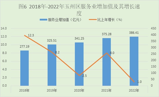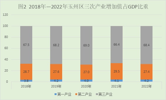 2022年玉州轄區(qū)((含玉東,下同))生產(chǎn)總值(初步核算數(shù))565.01億元,按可比價(jià)計(jì)算,比上年增長0.4%。其中,第一產(chǎn)業(yè)增加值23.49億元,增長5.4%;第二產(chǎn)業(yè)增加值155.11億元,下降2.1%;第三產(chǎn)業(yè)增加值386.41億元,增長1.0%。第一、二、三產(chǎn)業(yè)增加值占玉州區(qū)生產(chǎn)總值的比重分別為4.2%、27.4%、68.4%。