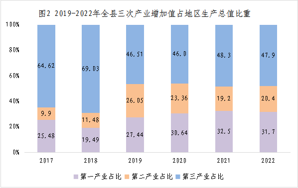 表1 2022年全縣地區(qū)生產(chǎn)總值及其構(gòu)成