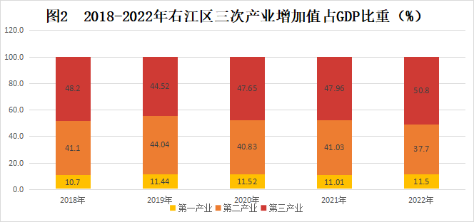 表1 2022年右江區(qū)生產(chǎn)總值(GDP)