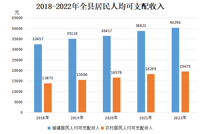 城鎮(zhèn)居民人均可支配收入40296元,比上年增長3.8%;農(nóng)村居民人均可支配收入19475元,增長6.6%。
