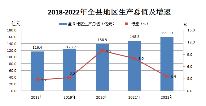 2022年,全縣規(guī)模以上工業(yè)總產(chǎn)值138.48億元,同比下降25.79%。規(guī)模以上工業(yè)增加值增速9.8%。規(guī)模以上工業(yè)營(yíng)業(yè)收入136.08億元,下降31.3%。