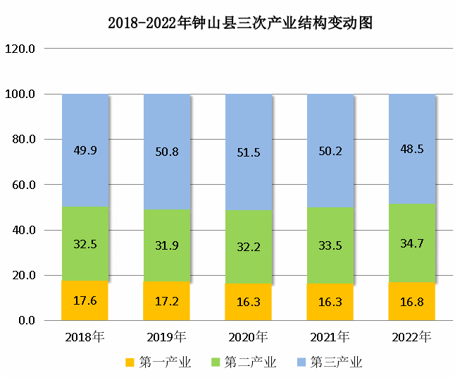 2022年,面臨復雜多變的內外部環(huán)境的嚴重考驗,鐘山縣上下各級各部門緊緊依托習近平新時代中國特色社會主義思想,深入學習黨的二十大精神。在縣委、縣政府的堅強指導下,全面落實“疫情要防住、經濟要穩(wěn)住、發(fā)展要安全”的要求,高效統(tǒng)籌疫情防控和經濟社會發(fā)展。面對經濟的逆風壓力,全縣全力以赴穩(wěn)增長、保穩(wěn)定、惠民生,全縣經濟承壓前行,運行總體穩(wěn)定。