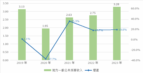 圖6:2019年—2023年地方公共財(cái)政預(yù)算收入及增速