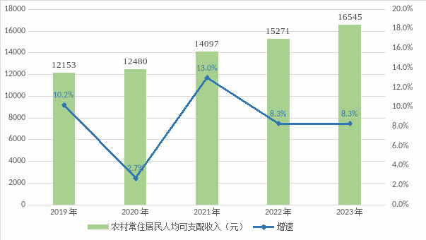 全年農(nóng)村常住居民人均可支配收入16545元,比上年增加1274元,同比增長8.3%。