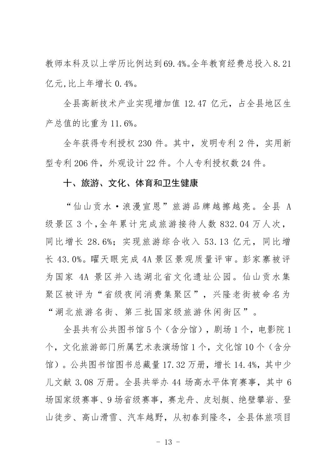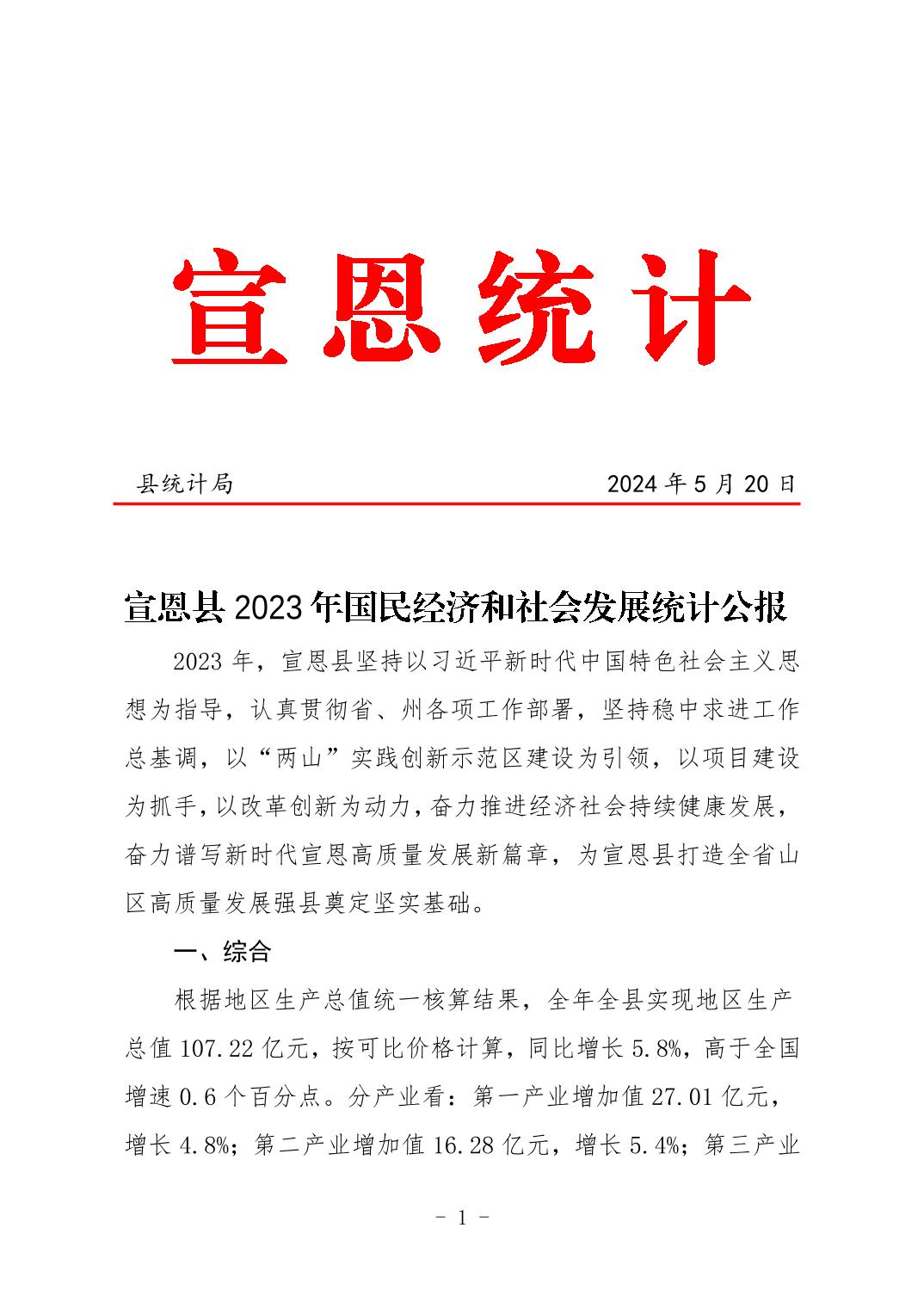 (湖北省)2023年恩施州宣恩縣國民經(jīng)濟和社會發(fā)展統(tǒng)計公報