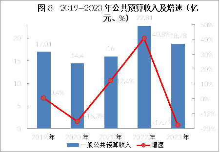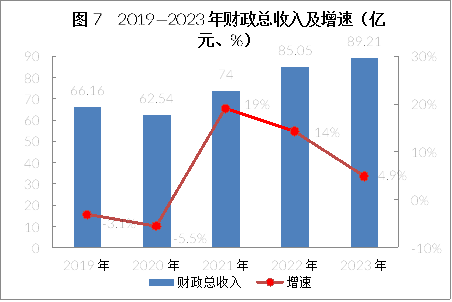 全年完成財(cái)政總收入89.21億元,同比增長(zhǎng)4.9%;一般公共預(yù)算收入18.78億元,下降17.7%,其中稅收收入16.45億元,稅收收入占公共財(cái)政預(yù)算收入的比重達(dá)87.6%;人均一般公共預(yù)算收入達(dá)2993元。