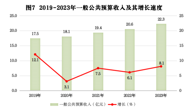 ? 全年全區(qū)完成一般公共預(yù)算收入22.3億元,增長8.1%。其中地方稅收收入15.8億元,增長8.3%,占一般公共預(yù)算收入的比重為71.0%。全年一般公共預(yù)算支出40.6億元,下降6.5%。在重點(diǎn)支出中,教育支出7.78億元,增長5.4%;科學(xué)技術(shù)支出0.83億元,增長58.9%;文化旅游體育與傳媒支出0.84億元,增長2.3%,衛(wèi)生健康支出3.11億元,增長2.6%,農(nóng)林水事務(wù)支出2.47億元,增長5.0%。