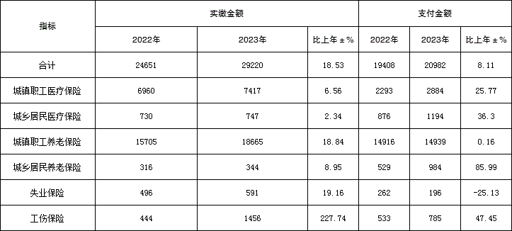 表4:2023年若羌縣六項(xiàng)社會(huì)保險(xiǎn)基金收支情況(單位:萬(wàn)元、%)