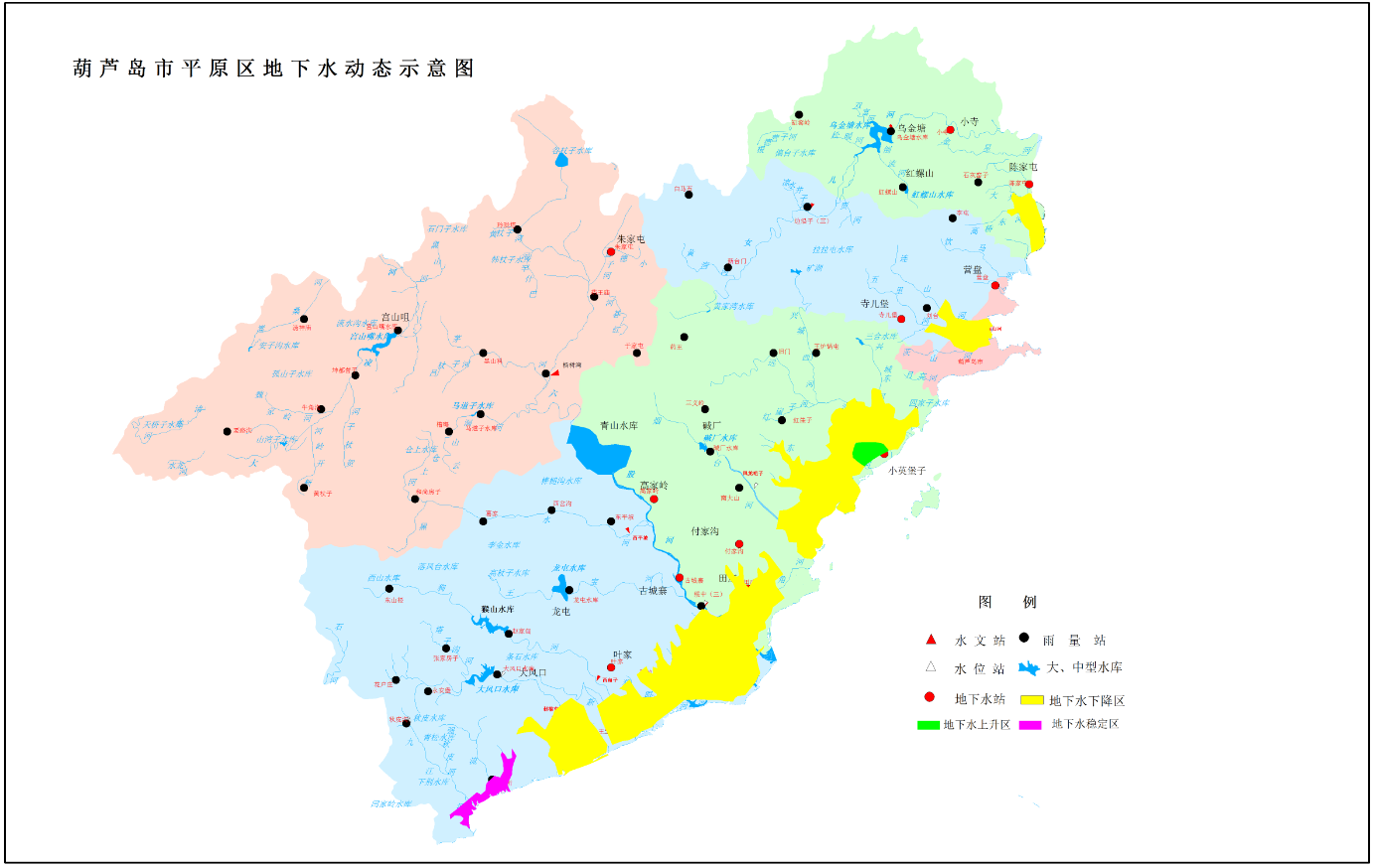 從行政區(qū)看,南票區(qū)平原地區(qū)地下水位平均下降0.47米,龍港區(qū)平原地區(qū)地下水位平均下降0.18米,興城市平原地區(qū)地下水位平均下降0.04米,綏中縣平原地區(qū)地下水位平均下降0.31米。