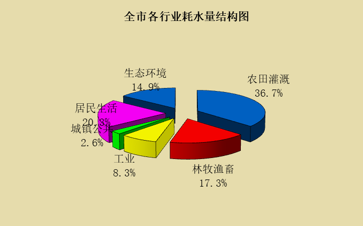 行政分區(qū)耗水量:建昌縣0.48億立方米,綏中縣1.14億立方米,興城市0.59億立方米,南票區(qū)0.31億立方米,連山區(qū)0.43億立方米,龍港區(qū)0.40億立方米。