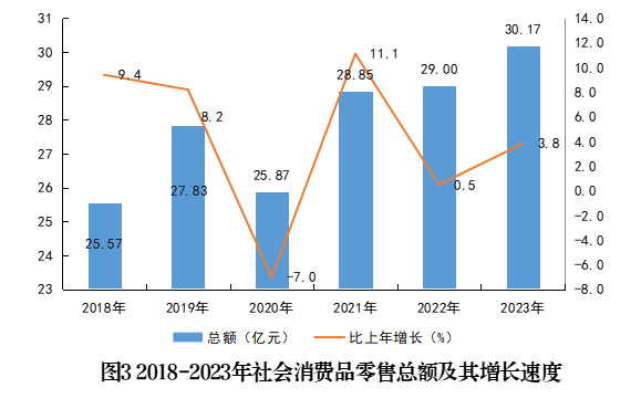 2023年,全縣實(shí)現(xiàn)全社會(huì)消費(fèi)品零售總額為30.17億元,同比增長3.8%;全年實(shí)際利用外資870萬美元,比上年下降77.0%,全年實(shí)現(xiàn)外貿(mào)進(jìn)出口總額16.71億元,同比下降10.0%(按人民幣計(jì))。