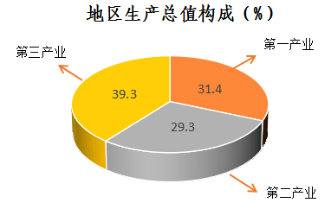 2023年,全縣生產(chǎn)總值(GDP)420384萬(wàn)元,按不變價(jià)格計(jì)算,比上年增長(zhǎng)5.2%。其中,第一產(chǎn)業(yè)增加值132070萬(wàn)元,增長(zhǎng)5.1%,第二產(chǎn)業(yè)增加值122992萬(wàn)元,增長(zhǎng)11.1%;第三產(chǎn)業(yè)增加值165322萬(wàn)元,增長(zhǎng)1.3%。第一、二、三產(chǎn)業(yè)增加值占地區(qū)生產(chǎn)總值的比重分別為31.4%、29.3%和37.3%,對(duì)經(jīng)濟(jì)增長(zhǎng)的貢獻(xiàn)率分別為31.43%、57.82%和10.75%。