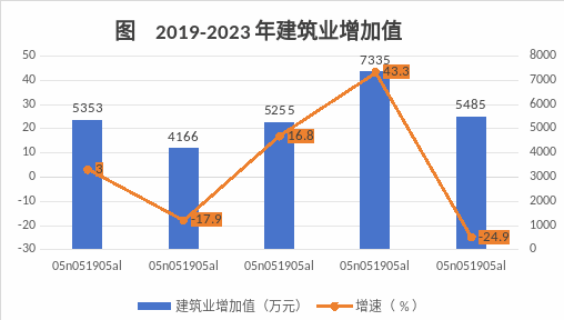 全年建筑業(yè)總產(chǎn)值16259萬元,下降62.8%。增加值5485萬元,下降24.9%。