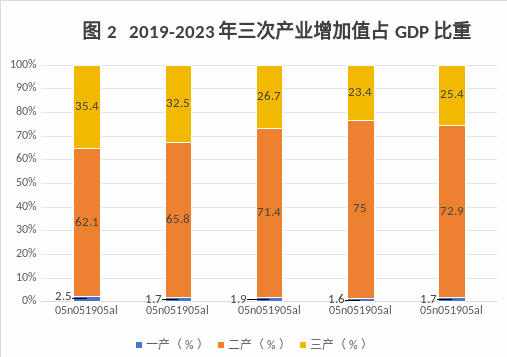 初步核算,全年地區(qū)生產(chǎn)總值364.6億元,按不變價格計算,比上年增長7.2%。其中,第一產(chǎn)業(yè)增加值6.2億元,比上年增長6.3%;第二產(chǎn)業(yè)增加值265.9億元,比上年增長7.1%;第三產(chǎn)業(yè)增加值92.6億元,比上年增長7.5%。三次產(chǎn)業(yè)占比為1.7:72.9:25.4。一產(chǎn)拉動GDP增長0.14個百分點;二產(chǎn)拉動GDP增長4.71個百分點;三產(chǎn)拉動GDP增長2.33個百分點。三次產(chǎn)業(yè)對GDP增長的貢獻率分別為1.99%、65.53%、32.48%。