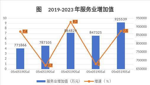全年批發(fā)和零售業(yè)增加值7.63億元,比上年增長0.7%;交通運輸、倉儲和郵政業(yè)增加值32.94億元,增長5.9%;住宿和餐飲業(yè)增加值0.88億元,增長14.5%;金融業(yè)增加值4.68億元,增長6.3%;房地產(chǎn)業(yè)增加值6億元,增長1.9%;營利性服務(wù)業(yè)增加值6.4億元,增長6.6%;非營利性服務(wù)業(yè)增加值33.53億元,增長11.7%。規(guī)模以上服務(wù)業(yè)企業(yè)營業(yè)收入5.5億元,比上年增長5.9%。凈服務(wù)收入1億元,比上年增長16.5%。