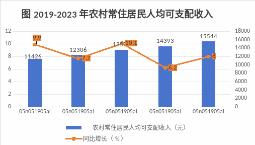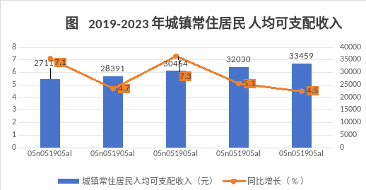 全年全區(qū)居民人均可支配收入25115元,同比增長5.8%。按常住地分,城鎮(zhèn)居民人均可支配收入33459元,同比增長4.5%;農(nóng)村居民人均可支配收入15544元,同比增長8%,城鄉(xiāng)居民收入比2.15,比去年縮小了0.08個百分點。